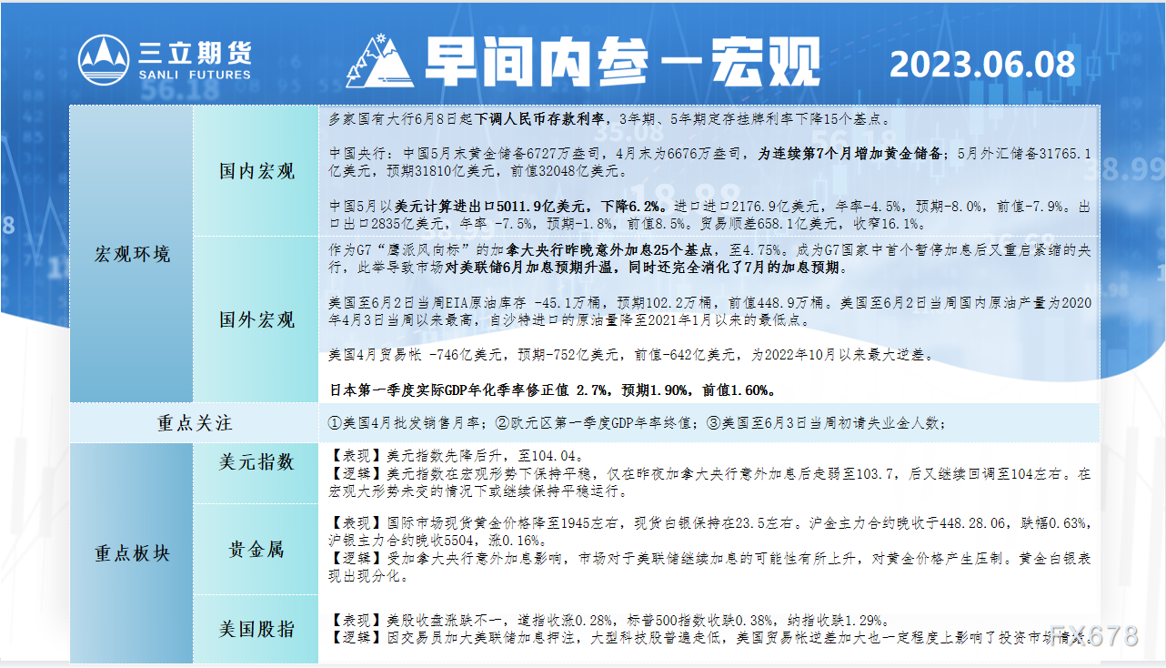 讯——三立期货早间内参显示,作为G7“鹰派风向标”的加拿大央行昨晚意外加息25个基点,至4.75%,成为G7国家中首个暂停加息后又重启紧缩的央行,此举导致市场对美联储6月加息预期升温,同时还完全消化了7月的加息预期。