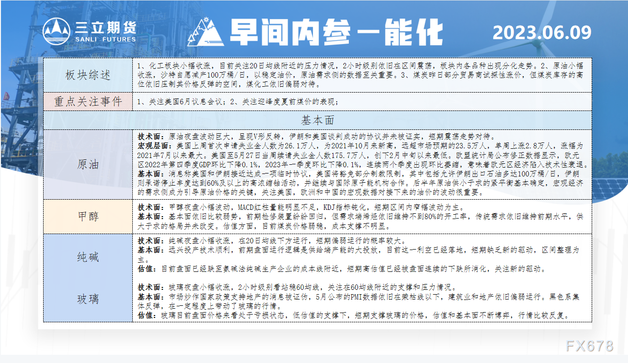 讯——三立期货早间内参显示,原油夜盘波动巨大,呈现V形反转,伊朗和美国谈判成功的协议并未被证实,短期震荡走势对待。甲醇夜盘小幅波动,MACD红柱量能明显不足,KDJ指标钝化,短期区间内窄福波动为主。