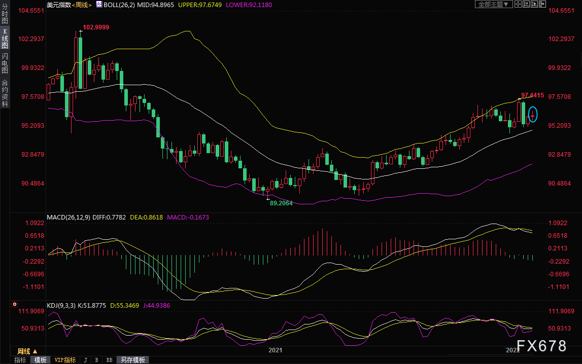 本周汇市持续笼罩在俄乌危机的阴霾中,避险情绪被相关消息所左右。美元指数本周基本维持震荡运行,整体波幅较小,最高触及96.44,最低跌至96.06,收报96.10,涨幅仅0.09%。