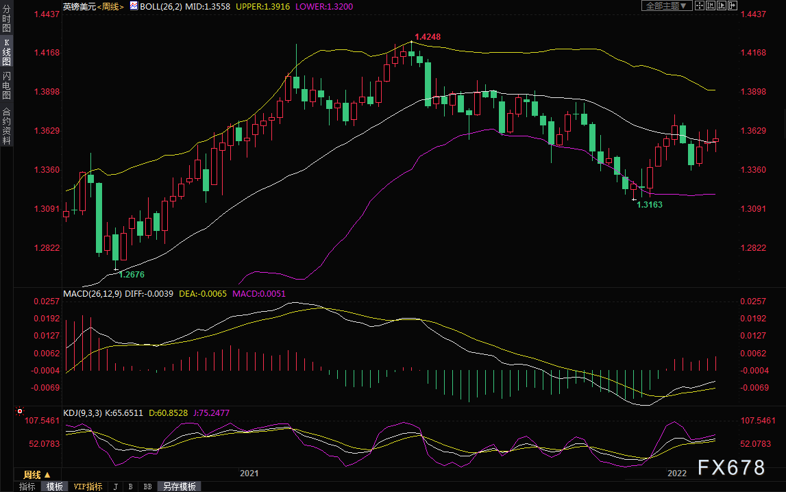 英镑持续受到加息前景的支撑,周三(2月16日)的数据显示英国通胀率升至近30年最高,更是强化了英国央行将进一步加息的预期。英镑兑美元本周震荡微涨0.18%,收报1.3589,虽然涨幅不大,但仍是连续第三周周线收涨。