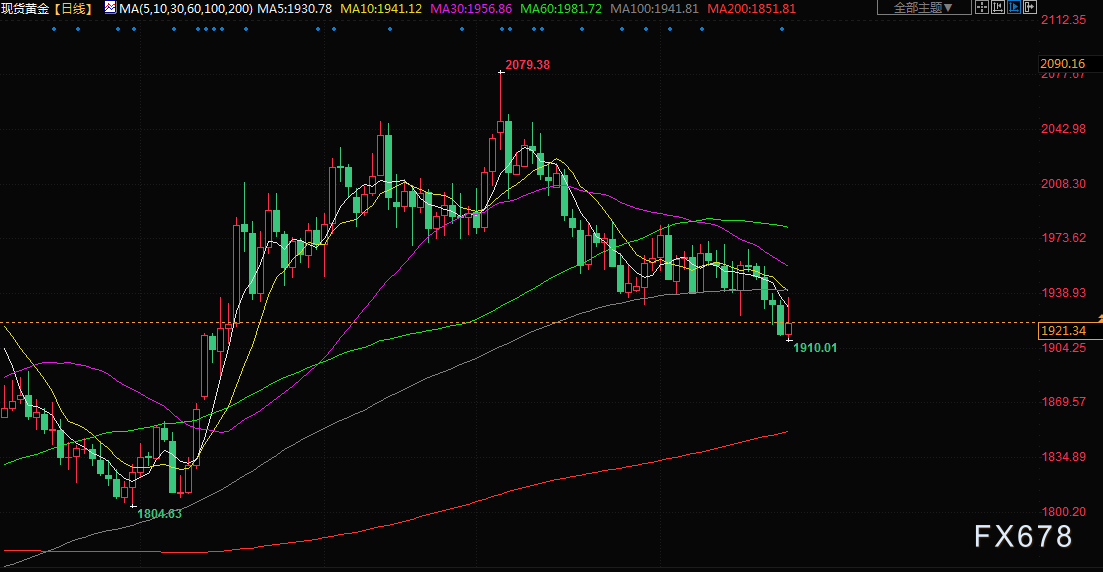 旧金山联邦储备银行主席戴利周五表示,美国今年再加息两次是“非常合理”的预测;本周,黄金下跌近2%,自5月初升穿2000美元的关键水平以来,已经下跌了逾150美元。