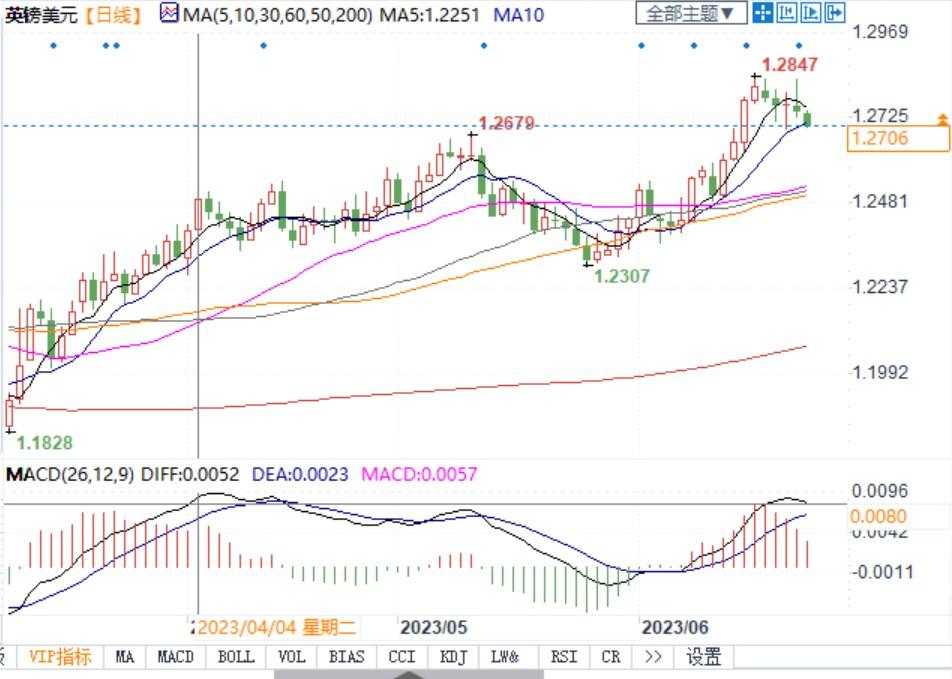 北京时间6月23日15:20,英镑兑美元报1.2710/11