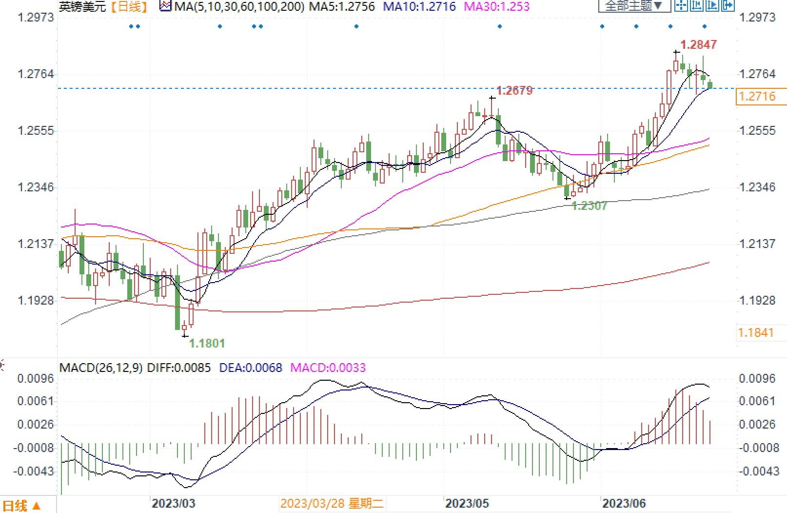 北京时间6月23日11:24,英镑兑美元报1.2712/14