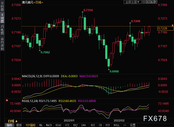 周二(2月22日)欧洲时段,澳元兑美元升至近两周新高,尽管市场避险情绪仍然高涨,但对澳洲联储最终加息的押注不断上升,成为支撑澳元的关键因素。