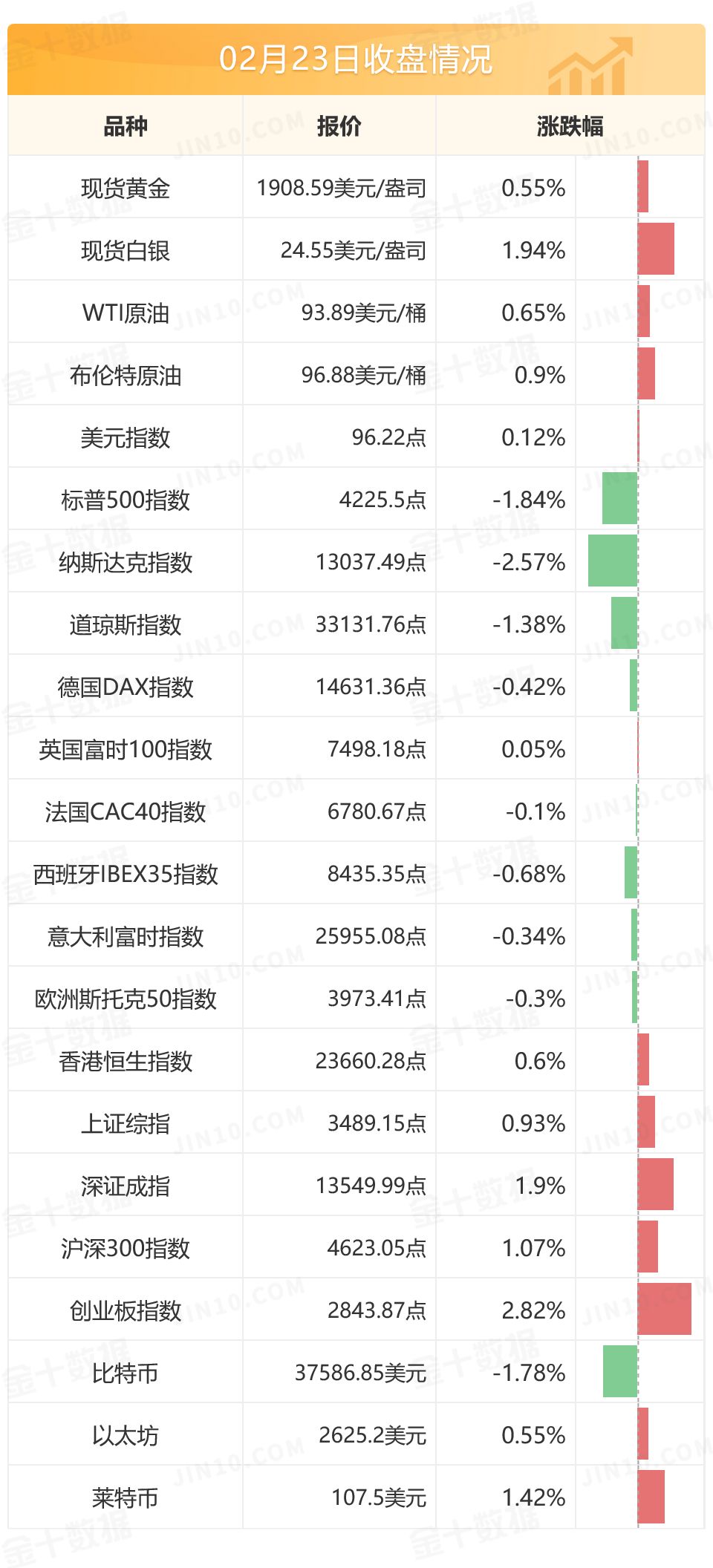 美元指数止跌反弹,收涨0.12%,报96.22;10年期美债收益率小幅走高,但两次上攻均未能突破2%关键水平,目前在此处附近的1.998%。