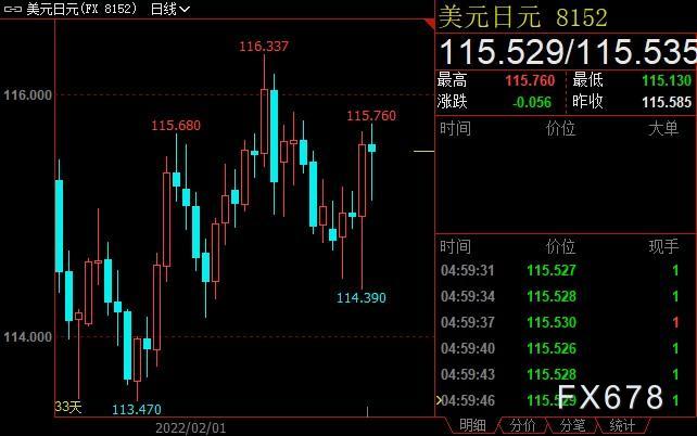 美元兑日元收高0.39%至115.529。不断上升的通胀、即将到来的选举、加上日元贬值推高生活成本,料将促成日本央行立场终于出现原本难以想像的鹰派转变,而且可能最快今年夏季就会实现。