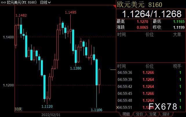 在天然气价格飙升和乌克兰紧张局势升级的情况下,欧元受到避险情绪上升的冲击,兑美元汇率本周收跌0.54%至1.1264,并创2020年6月1日以来新低1.1106。