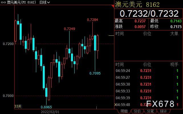 澳元兑美元收高0.73%至0.7232,纽元兑美元收高0.82%至0.6748,美元兑加元收跌0.47%至1.2700。俄罗斯入侵乌克兰导致市场情绪大幅波动,但也提振了大宗商品价格,商品货币得以守住阵脚。