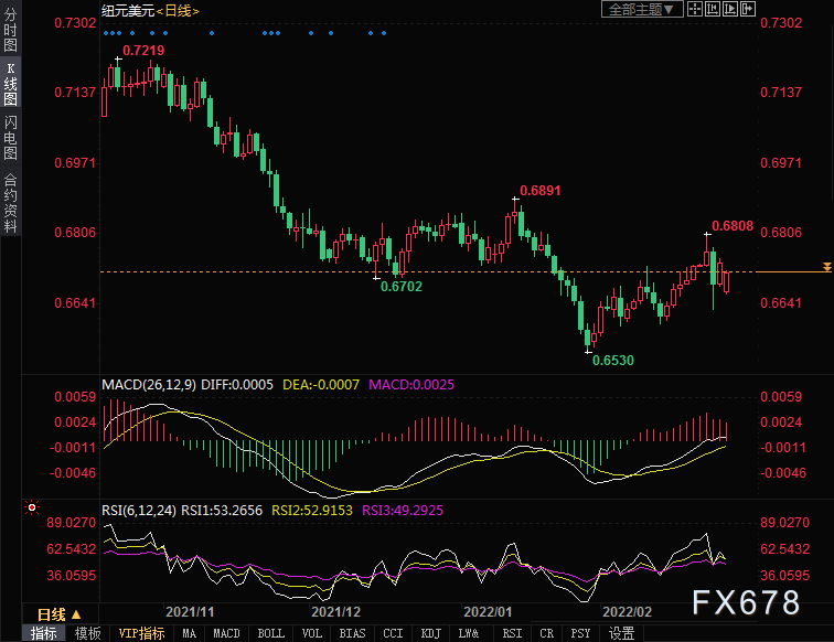 周一(2月28日)欧市时段纽元兑美元回升至0.6700的整数关口上方,并在过去一个小时刷新日内高点,在俄乌谈判开启之际,市场情绪逐渐稳定。