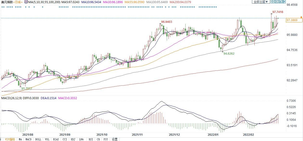 北京时间3月2日8:53,美元指数报97.39。