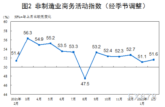 2月份,非制造业商务活动指数为51.6%,比上月上升0.5个百分点,表明非制造业总体恢复有所加快。
