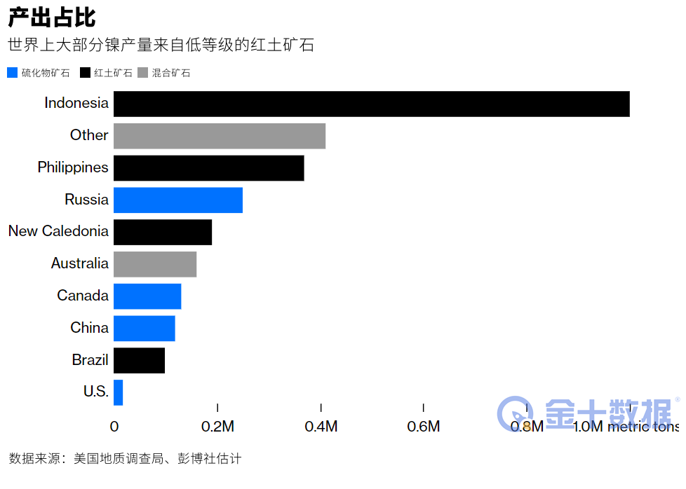 近年来大受市场欢迎的二级镍,主要由镍红土生产,这是一种低品位的矿石,很容易从东南亚和热带其他地区的风化土地中剥离开采。