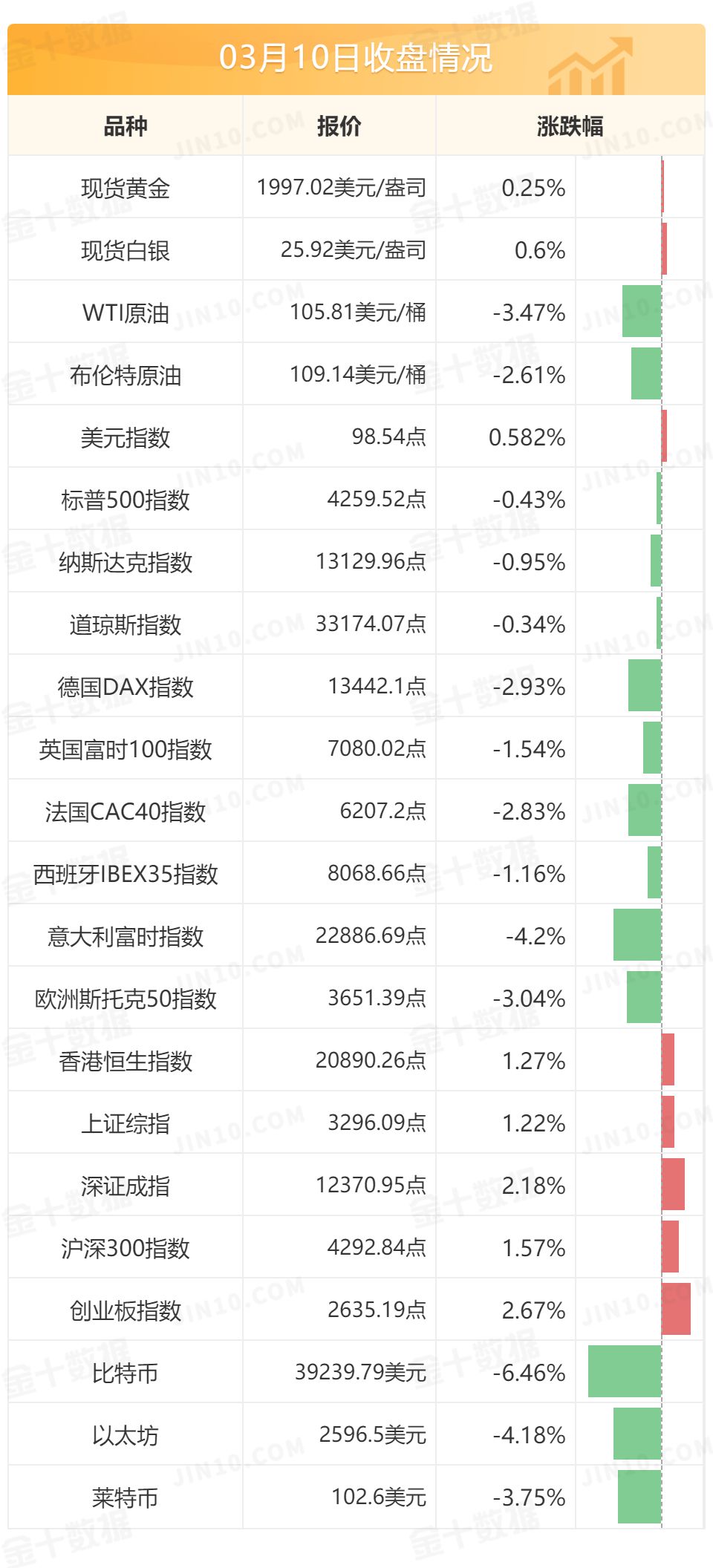 美元指数回升至98美元关口上方,最终收涨0.582%,报98.54,美国10年期国债收益率继续上行,最终收报1.99%。