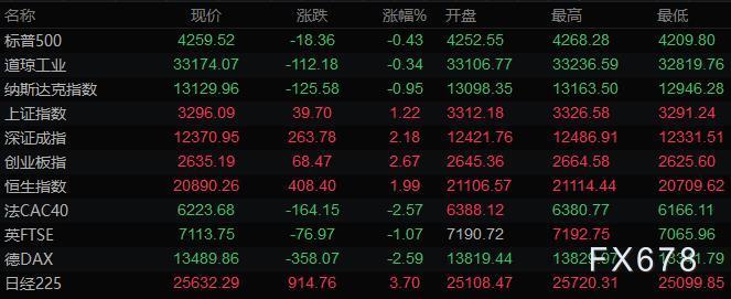 美股收盘情况:标普500指数下跌0.4%,报4259.52点;道琼斯工业平均指数下跌0.3%,报33174.07点;纳斯达克综合指数下跌1%,报13129.96点;纳斯达克100指数下跌1.1%,报13591点;罗素2000指数下跌0.2%,报2011.673点。