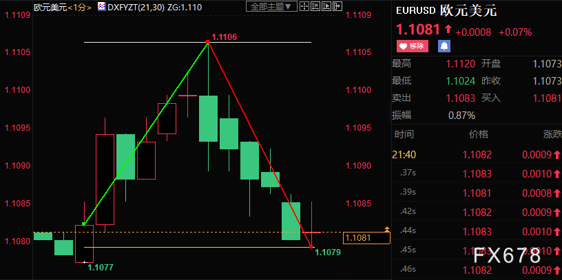 北京时间周四(3月10日)21:30,欧洲央行行长拉加德将召开新闻发布会,上调通胀预期,并下调经济增长预期。截止发稿,欧元兑美元冲高回落近30点,高点和低点分别是1.1106和1.1079。