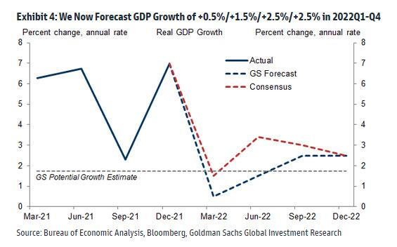 “在未来几个季度,高盛及其同行将对GDP增长做出更大的削减——即使通胀继续上升,随着中期选举的临近,美国将陷入一段痛苦的非暂时性滞胀时期。”