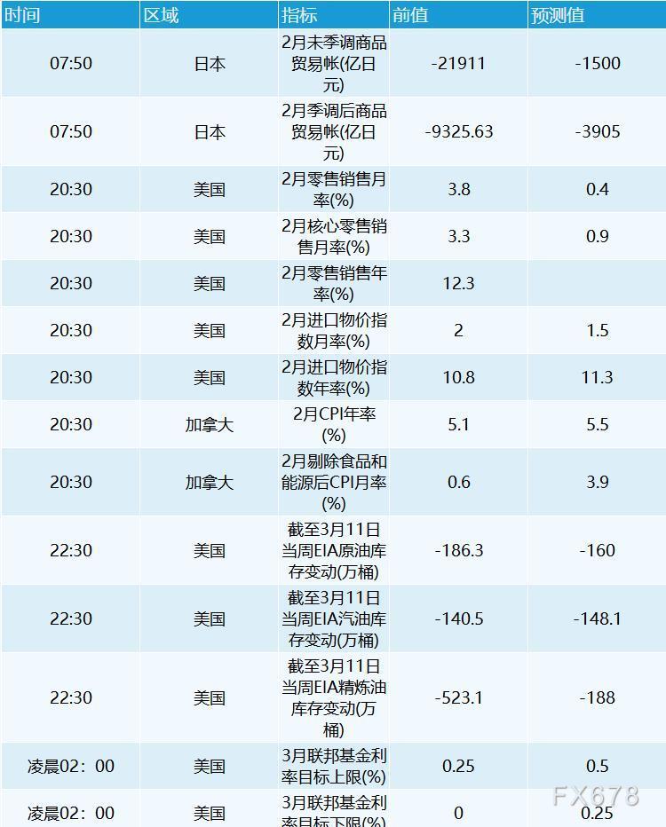 2月份美国生产者价格指数强劲上升,凸显出美国经济面临的通胀压力,美联储可能周三在2018年以来首次加息;不过,美联储官员们仍需在遏制物价与避免重创经济之间取得平衡