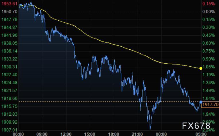 现货黄金连续第三天下跌,盘中一度跌逾2%,刷新近二周低点至1907.01美元/盎司,对俄罗斯和乌克兰和平谈判取得进展的希望,以及美国加息的可能性,削弱了对避险黄金的需求。
