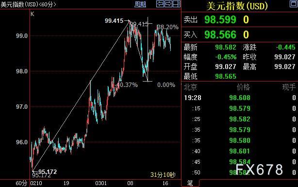 美元指数处于自97.70点开启的上行iii浪,后市料升破38.2%目标位99.32点。iii浪是自95.172开启的上行(iii)浪的子浪。(iii)浪则是自89.206开启上行((i))浪的子浪。