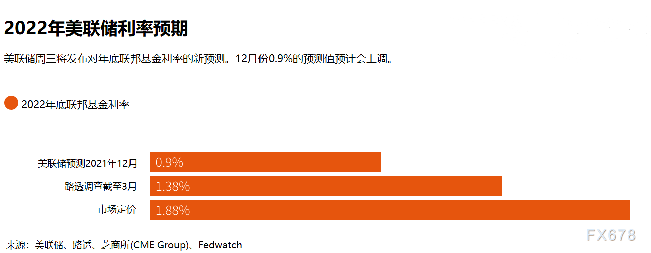 分析师预估中值还显示,到2022年底,美联储将把目标联邦基金利率从目前接近于零的水平上调至1.25%至1.50%的区间,相当于五次25个基点的加息。