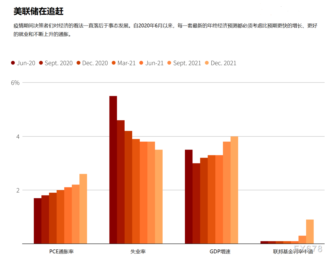 自新冠疫情开始以来,美联储对美国经济的预测与实际情况的发展不同步。