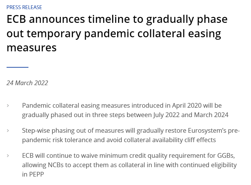 周四,欧洲央行宣布将从今年7月开始逐步取消与疫情有关的抵押品宽松措施,同时继续接受希腊债券,直到其紧急抗疫购债计划(PEPP)的再投资期结束。