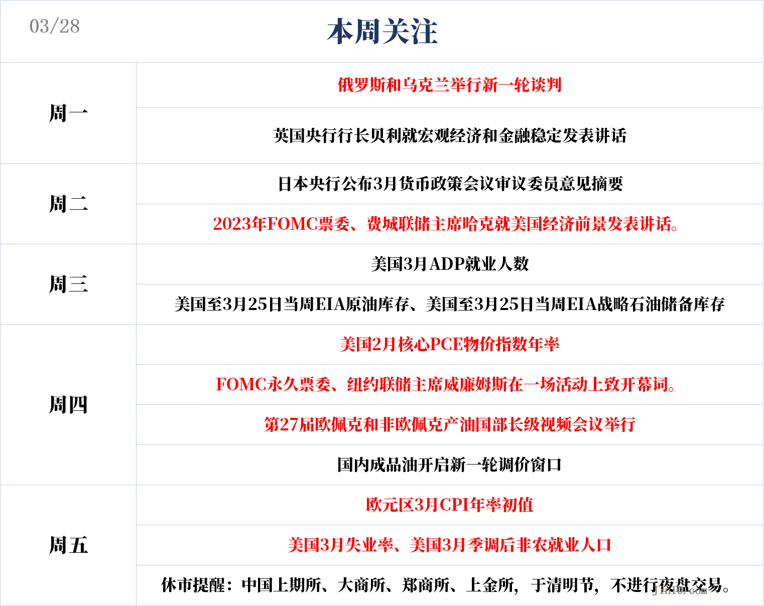 ☆待定,俄罗斯和乌克兰举行新一轮谈判。乌克兰谈判代表称,乌克兰和俄罗斯代表团将于3月28日至30日在土耳其举行会谈。俄方代表团团长此前表示,俄乌双方在俄罗斯坚持的主要立场上没有取得任何进展。