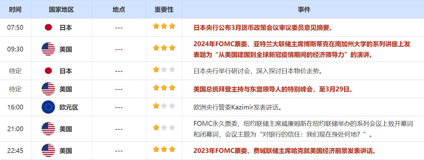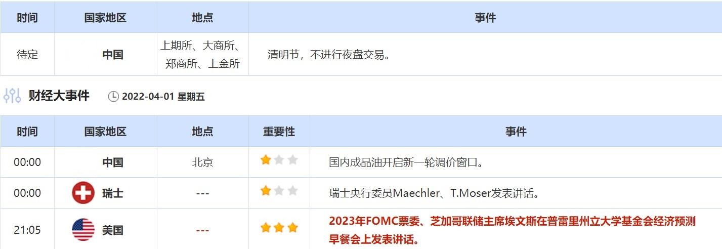 3月24日,芝加哥联储主席埃文斯没有发出任何希望将利率在单次会议上提高半个百分点的信号,这与前几日他的一些支持50个基点加息的同事们不同。4月1日他将再次发表讲话,投资者需继续关注他的观点有无变化。