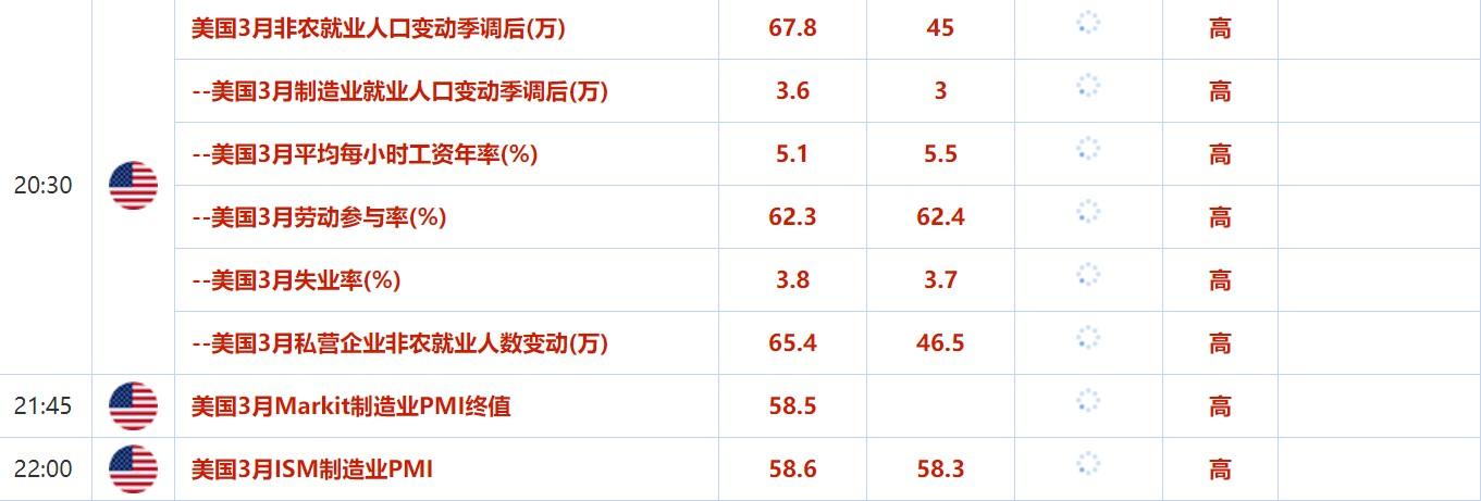 周五(4月1日)关键词:欧洲多国Markit制造业PMI终值,美国3月非农,芝加哥联储主席埃文斯