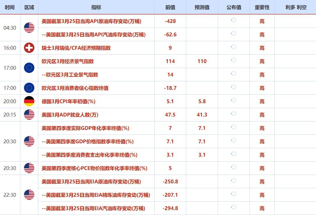 周三(3月30日)关键词:API原油库存变动,美国3月ADP就业人数,EIA原油库存变动