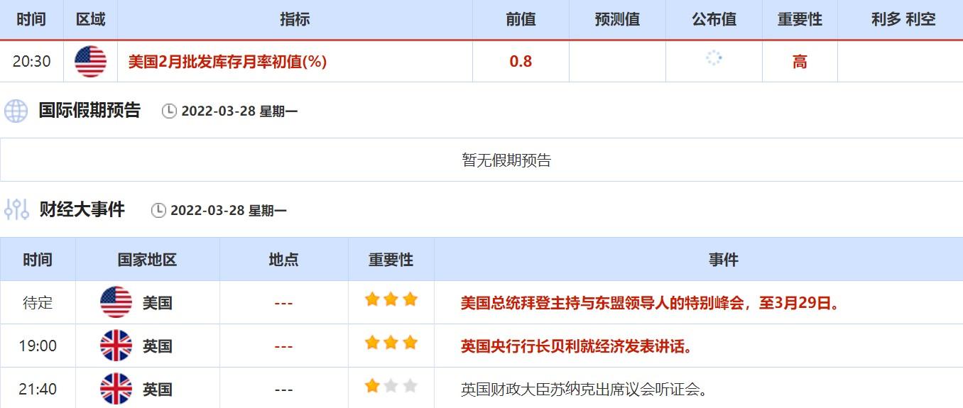 3月28日-4月2日当周,投资者需要关注的数据:美国2月批发库存,API和EIA原油库存变动,美国3月ADP就业人数,美国初请失业金人数和3月非农。事件方面需关注OPEC+会议。本周还需关注美联储官员和英国央行行长贝利的讲话,或将释放未来货币政策的相关消息。