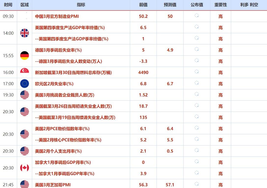 周四(3月31日)关键词:中国3月官方制造业PMI,美国初请失业金人数,OPEC+会议
