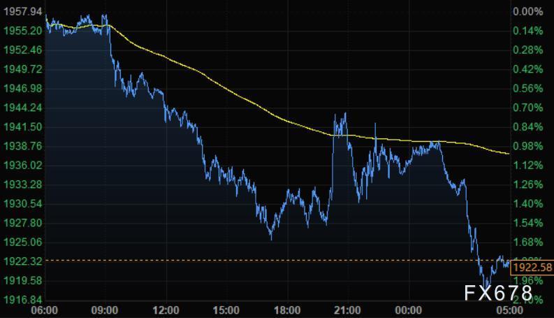 周一现货黄金大跌,盘中一度跌逾2%,刷新近三个交易日低点至1916.84美元/盎司,受压于美债收益率走高和美元走强,而俄罗斯和乌克兰和平谈判前对供应的担忧缓解,导致钯金大跌近8%。