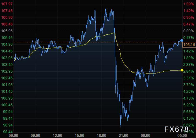 油价剧烈震荡,美油尾盘反弹至105之上,跌幅缩窄至不到1%,此前一度跌超7%至98.44美元/桶,此前莫斯科表示将大幅减少在乌克兰首都基辅附近的军事行动,并暗示愿意考虑普京与泽连斯基之间的直接会谈;不过周二俄罗斯和乌克兰之间的谈判未能达成停火协议,美国在等待观察局势降温的迹象并告诫称不要急于认为取得了进展。