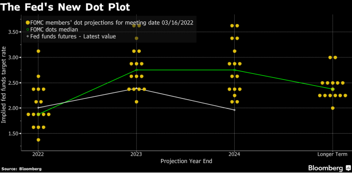 美联储最新的点阵图中,官员们的预测中值是基准利率到2022年底将在1.9%左右,然后在2023年升至2.8%。