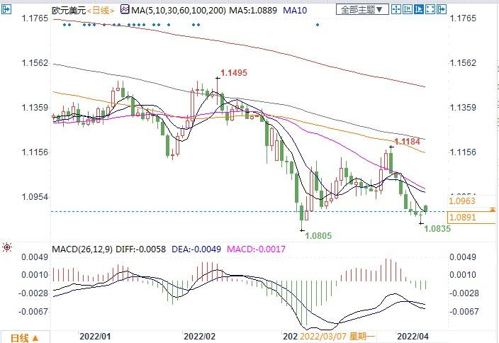 北京时间4月11日13:56 欧元兑美元 报 1.0891