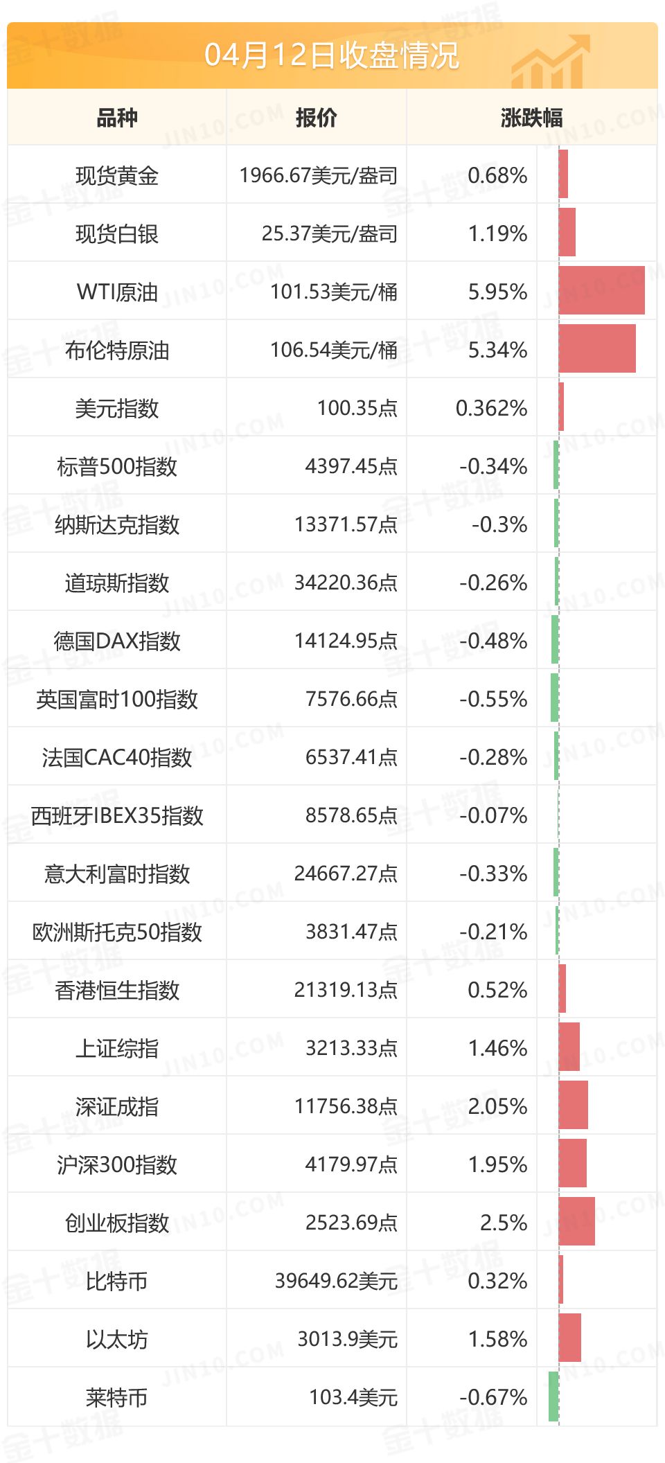 股市方面,核心CPI低于预期刺激美股上行,但布雷纳德的讲话令道指回吐所有涨幅,最终收跌0.26%,报34220.36点。标普500指数收跌0.34%,报4397.45点;纳指收跌0.3%,报13371.57点;盘面上,油气股、贵金属板块表现较好,中概直播概念股、银行股普跌。