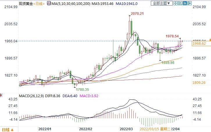 北京时间4月13日13:25 现货黄金 报 每盎司1968.62美元