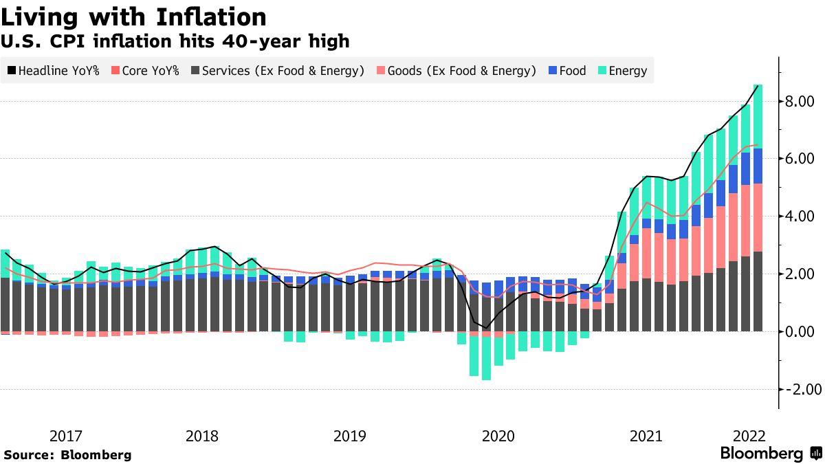 本周的数据显示,美国3月份消费者价格同比上升8.5%,为1981年以来的最大涨幅。该指标历来比美联储最青睐的通胀指标高出约40个基点。