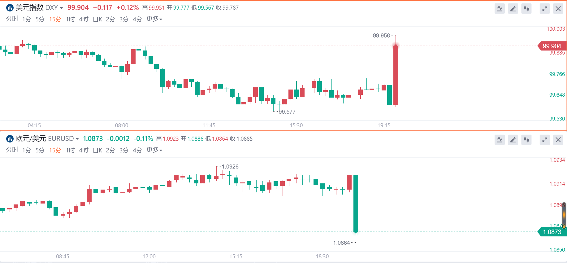 周四美盘前,欧洲央行公布利率决议,维持三大关键利率不变,符合市场预期。美元指闻讯短线涨幅扩大至20点,欧元兑美元短线跌幅扩大至65点。