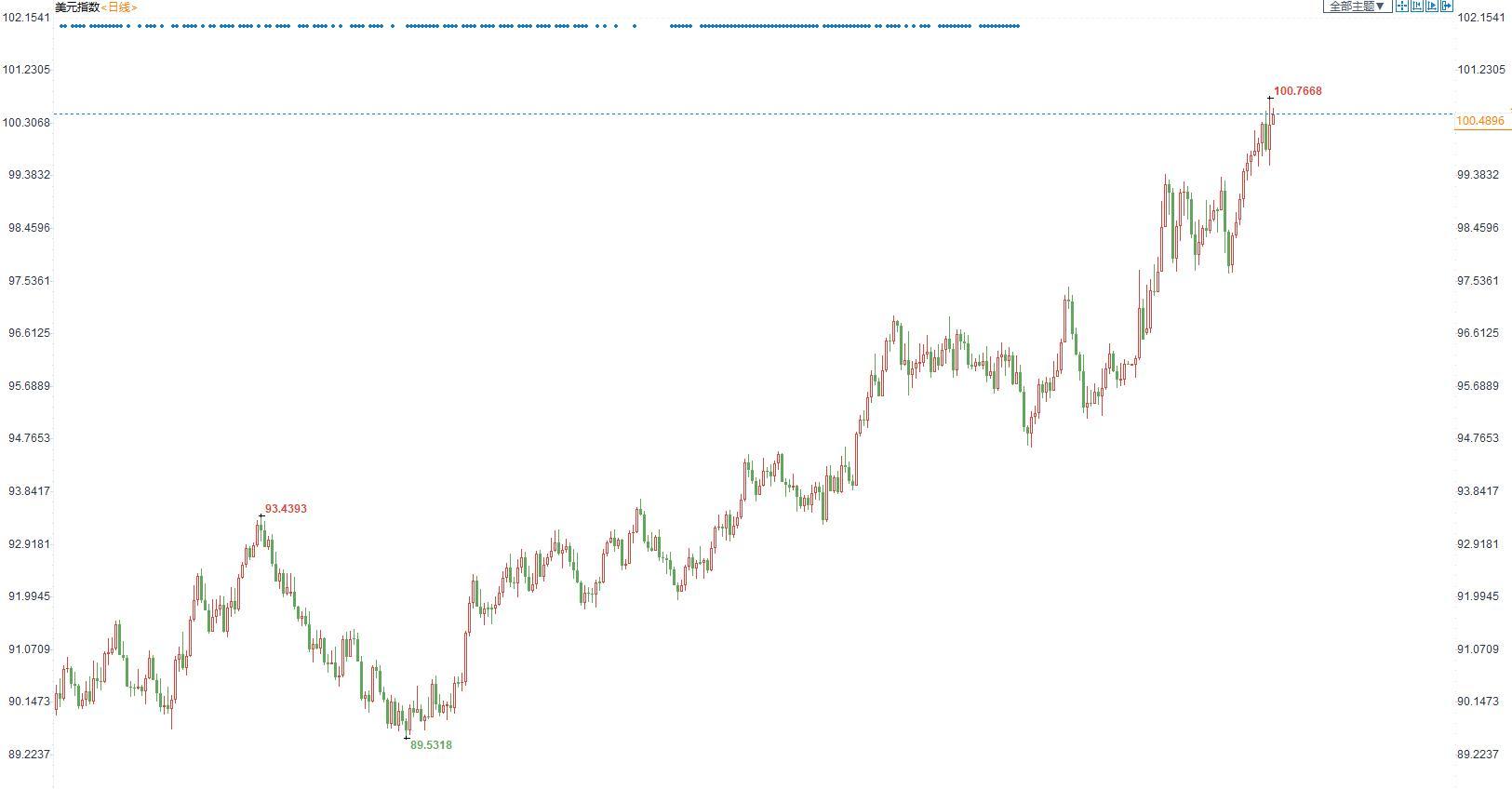 美元指数本周表现强劲,最新经济数据的表现和美联储官员的讲话,再度令投资者担心美联储可能大幅收紧货币政策。