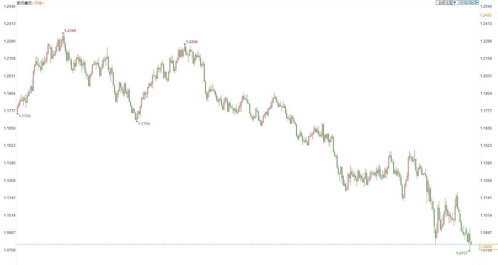 欧元兑美元本周震荡走低,主要受累于强势美元,欧洲央行的鸽派基调又给欧元下行压力