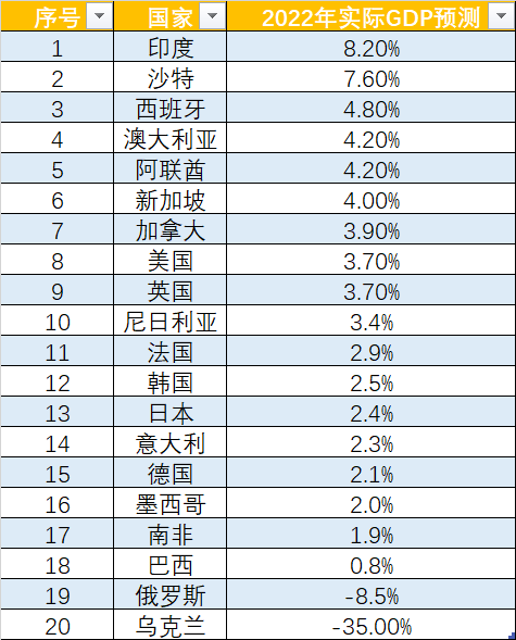 乌克兰战争影响大,一张图看IMF最新20国经济预测!