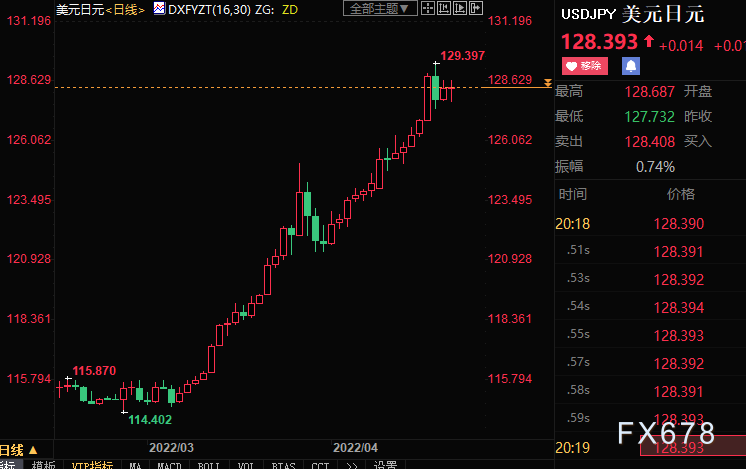 美元兑日元周线七连阳成定局,本周累上涨约1.6%,盘中创近20年新高至129.397。美联储相对鸽派央行(欧洲央行、日本央行)之间的政策分歧继续支持美元走强。