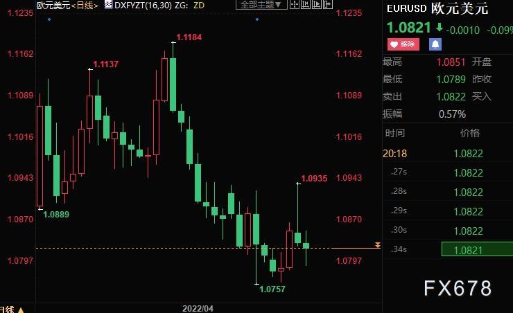 欧元兑美元持稳,没有进一步跌破上周创下的2020年4月下旬以来新低1.0757。欧洲央行官员发表强硬言论,市场押注欧元区利率将很快上升。德国央行行长Joachim Nagel表示,欧洲央行可能会在第三季度初加息。