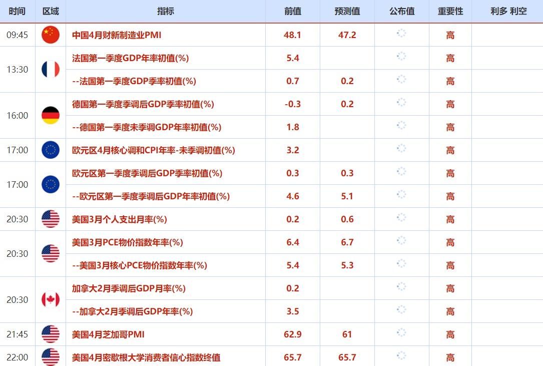 周五(4月29日)关键词:欧元区第一季度季调后GDP,美国3月PCE物价指数