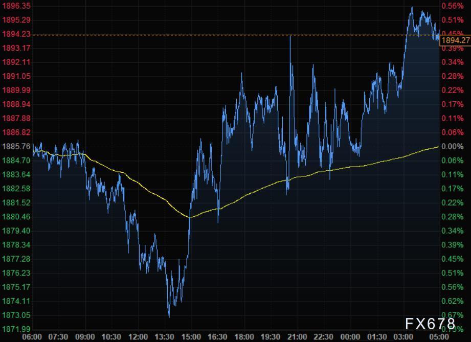 现货黄金从10周低位大幅反弹,尾盘回升至1894美元附近,受累于强势美元和对美国加快加息步伐的预期,盘中稍早曾触及1871.99美元,为2月17日以来最低。