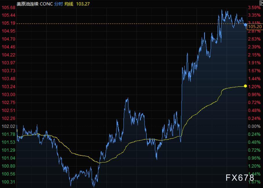 美油尾盘涨逾3%,至105.20美元/桶,欧盟禁止从俄罗斯进口石油的可能性似乎在上升,全球柴油供应紧张的加剧亦构成支撑。油价此前上下震荡。德国准备分阶段停止购买俄罗斯石油,为欧盟禁止进口俄罗斯石油扫清障碍。周四的最新报道进一步推动价格上涨。