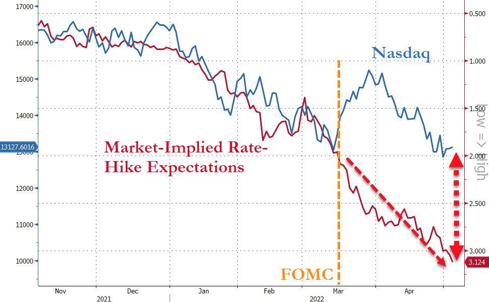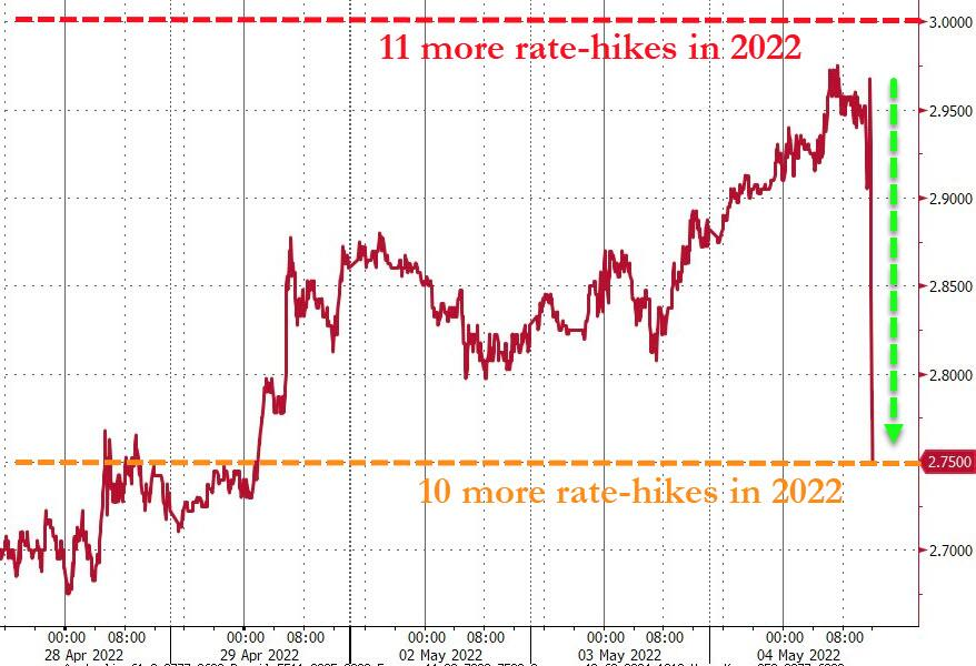 然而,金融博客零对冲警告,市场显然忽略了一个事实:它们根本没有为一系列50个基点的加息定价。这与彭博社IraJersey的警告相呼应,即:一系列50个基点的加息,而没有75个基点加息,实际上可能意味着更高的终端利率。