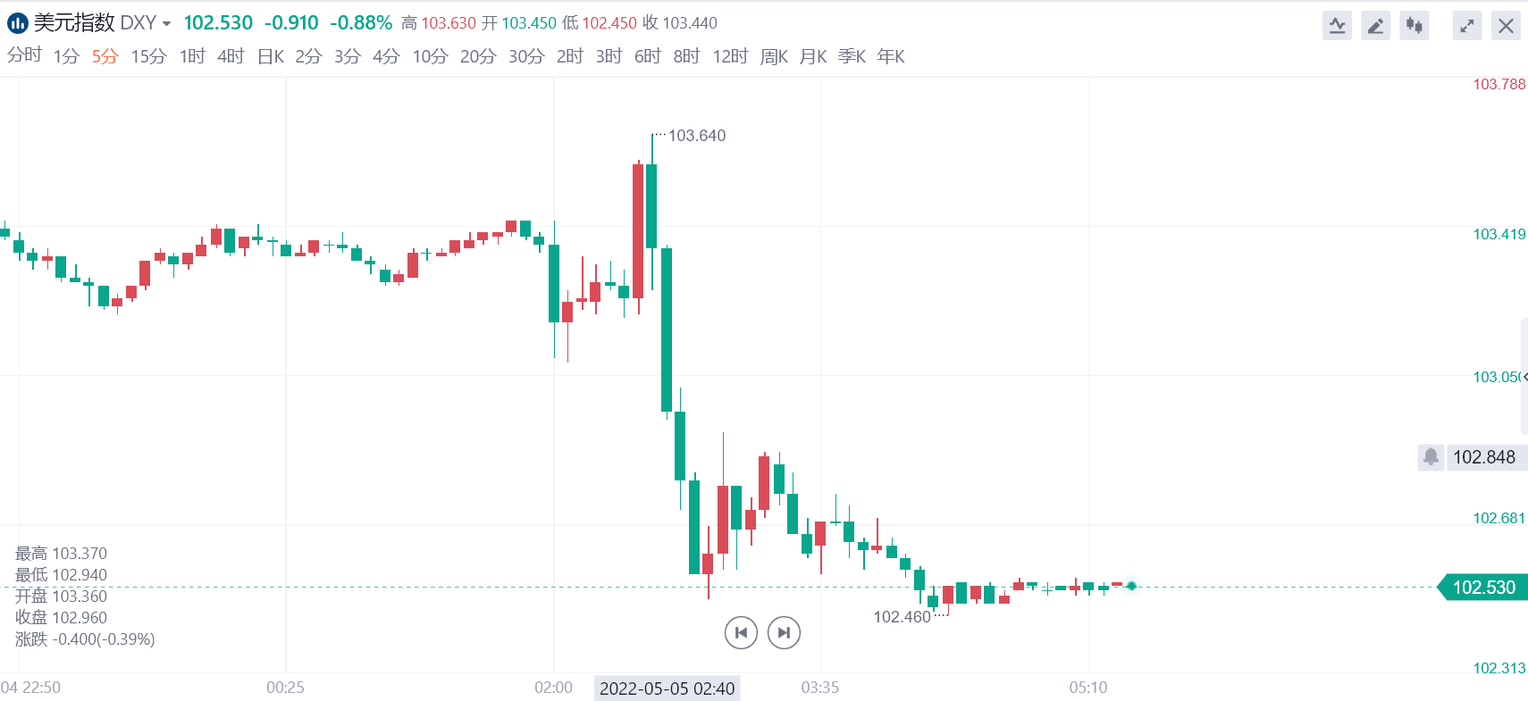 但鲍威尔明显不愿意在近期内以更大幅度加息,他称75个基点的加息不是委员会“积极”考虑的事情。有人认为,此话意味着他排除了加息75个基点的可能。市场走势开始反转,美元指数闻讯走低,美股飙升、收益率曲线陡峭,美债短期收益率暴跌,恐慌指数VIX暴跌。